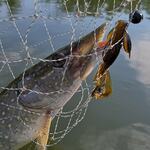 Горинь, район Ходоси. Рибалили з лодки, 3 7 до 16 години, одна покльовка - одна щука. Взяла на глубині 3-3,5 метра, проводка по дні. Вага щуки 1,4кг.