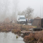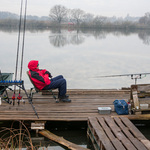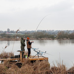 Всього взяли участь вісім команд. Всі вони розмістились вздовж одного берегу в північно-східній частині ставу, інша половина водойми все ще не почищена від коряг й рослинності, щоб там можна було рибалити на фідери. Сиділи ми всі на доволі вузькій дамбі, між двома ставками. Автомобілі стояли один за одним на цій дамбі, як і наші намети.
