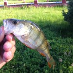 Згадавши про нове-старе місця, і перейшовши туди було отримано на другій проводці клювання і схід невеличкого окуня!Атакував доречі він Лярву від ТМ"Фанатік"!Далі було ще пару сходів по відчуттям невеликх 100гр. окушків , та заміна приманки на Riens G-tail Saturn і клювака вже гарного окушка!
