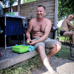 Так пройшов у постійній роботі перший день нашого перебування на водоймі. Ми ловили, годували та пере закидалися, а наші дружини займалися хто чим відповідно до своїх вподобань. Ближче до вечора приїхав Олег зі своєю дружиною і тепер нас стало вже восьмеро. Допомогли йому поставити намет та облаштуватися, і відразу з дороги Олег взявся за приготування шашлику з овочами гриль. Адже в даному аспекті – в команді він головний, і за гастрономічну кухню в секторі відповідальний Олег.