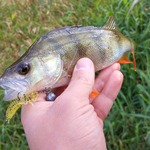 08.10.2023 разом з батьком ловив на р. Горинь. Час ловлі з 15 до 18:30. Вода дуже прозора та низька. Окуня знайшов у двох локаціях, поблизу ямок. Вся риба піймана на силікон в розмірі 2". Пробував на ветрушку, але покльовок не було. Всього вдалося піймати біля десяти окунів 30-100 г.