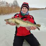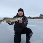 З самого ранку покльовок абсолютно не було до одинадцятої години. Перший підйом флажка в напарника, та перша щучка, після цього два холостий підйоми та гарний судак в мене.