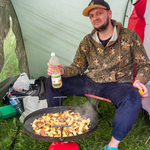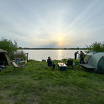 Приїхали на свої 4 та 5 сектори, але вирішли рибалити всі на купі в 5, щоб було веселіше і без біганини. Ловили цього дня без загодовування спомбом чисто на корм в годівницях. Перша моя риба о пʼятій дня - дзеркальний короп. Перед цим о третій був прикрий схід перед головою підсака. Паралельно Діма ловить також ввечері двох маленьких риб із зарибку.