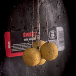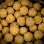 Цього разу як і в більшості своїх звичайних рибалках я користувався лише бойлами та коброю. На цій сесії мав можливість потестувати бойл Sweet від компанії Robin – бойл з яскравим жовтим кольором та дуже вираженим карамельним запахом (я його називав Український CC Moore Live Sistem). Більшість риболовів ловлять на м’ясні та рибні смаки (сквід, лівер, белачан та інші в різноманітних міксах), мені хотілося спробувати та протестувати як себе покаже солодкий бойл. Бойл Robin Sweet – дуже легкий та швидкий по собі бойл, навіть будучи вареним не лежить на дні як каміння як в інших деяких виробників, а через 5-6 годин розпадається та перетворюється в маленьку купку прикормки яку вже досить швидко може рознести та дрібна риба, бойл дуже добре вбирає ліквіди і дуже швидко їх віддає в воді, що дає можливість створити швидкий атрактивний сигнал, заливши бойл однойменним ліквідом. На запах, тактильно та по консистенції розламавши його — мені все подобалося, лишилося потестувати на скільки він буде подобатися рибі? Даним бойлом я годував коброю лише ближню точку «кратер». Дальню точку «амфітеатр» я годував зовсім іншим бойлом, як за смаком та структурою.