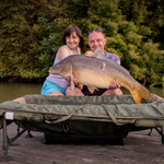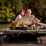 Близько 02:25 спрацьовує ближня точка і поки я підбіг до вудилища, ліска стрімко була спрямована в праву сторону майже на 90 градусів, я підсік і почав неквапливо виважувати, по відчуттях риба не пручалася і не махала головою як ведуть себе середньостатистичні коропи вагою до 14 кг. - просто тягнулася як мішечок, біля берега ще спробувала розвернутися і відвоювати декілька метрів ліски, але поступово я повернув перевагу на свій бік і завів рибу в підсак, і вже коли підіймав підсак з води відчув що там не короп вагою 12-13 кг. Під час зважування вага показала 21,800 – радості моїй не було меж, я був такий щасливий що мені вдалося спіймати Улянівського Трофея – наполеглива праця та віра у свої дії та місце лову принесли бажаний результат. Далі я мав ще декілька клювань менших риб і близько 5:00 вирішив вимотати вудилища і трохи відпочити, бо практично був без сну дві доби, і через постійні клювання не давав дружині заснути зриваючись зі спальника на клювання.