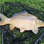 Доволі швидко у мене сталася перша покльовка. На пучок опаришів. Отакий короп: