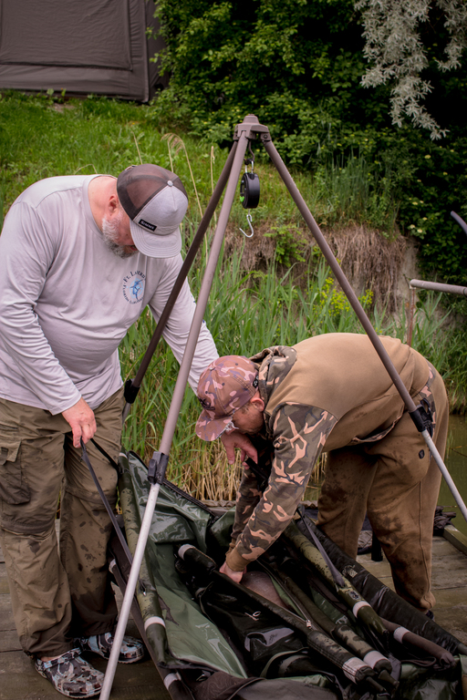 На цю добу все вирішуємо залишати без змін за вийнятком корегування четвертого вудилища яке давало багато не залікової риби, хоча і стабільно працювало. Також перше вудилище чомусь затихло – тому нова порція бойлів полетіла у воду, щоб її перезапустити та змусити коропів цікавитися нашими насадками. І точки починають працювати знову даючи нам можливість пакувати слінги з заліковою рибою серед яких декілька коропів вагою 16+ та гарний амур в районі 15+. Так до обіду ми мали знову «ельдорадо на помості». А потім і короп вагою 21,440 якого виважував я і який мало не зайшовши під помост 14 сектора не зійшов, риба просто не давала собою керувати й робила що їй заманеця, да й не хотілося форсувати рибу відчуваючи відповідальність і важливість кожної залікової риби на даному етапі (цього разу гарно спрацював Вадік який тримаючи ліску не дав тому коропу зайти під помост.). І потім ми мали ще одне клювання хорошої риби яка за поведінкою вела як мій короп який зійшов, але не уважність з поводком дала можливість рибу зійти.