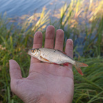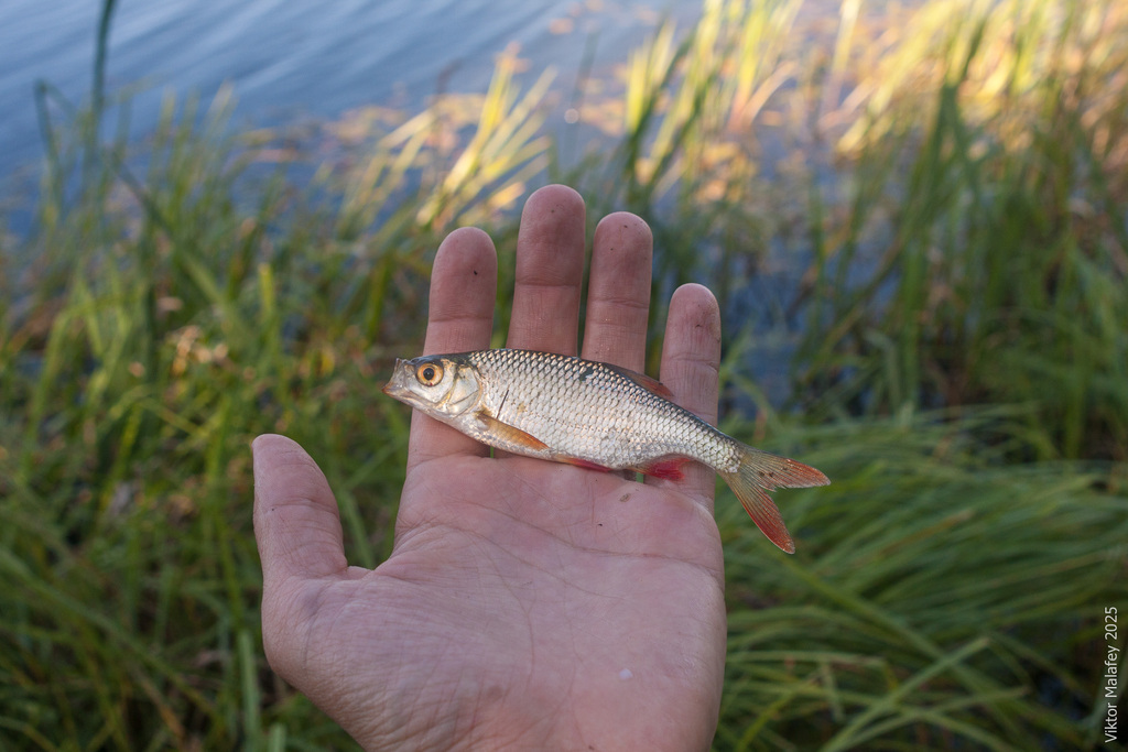 Отже, ввечері клювало доволі таки слабенько, у мене на хробак вішалась червонопірка розміром з палець. А в Сашка ця ж червонопірка клювала лише на опариш. Єдиним промінчиком світла цього вечора в плані результативності був невеличкий линочок, що клюнув в місці вільному від корму взагалі) Це я там шукав хоч якусь рибу. Ну, я ще туди засипав замороженого з минулого року відвареного овесу.