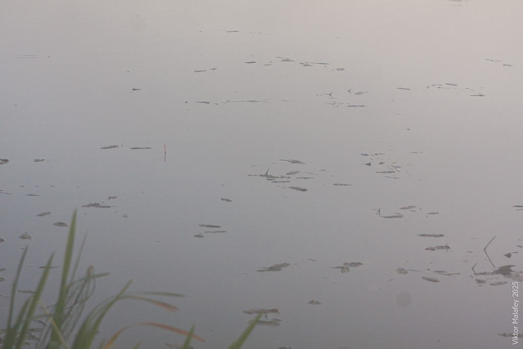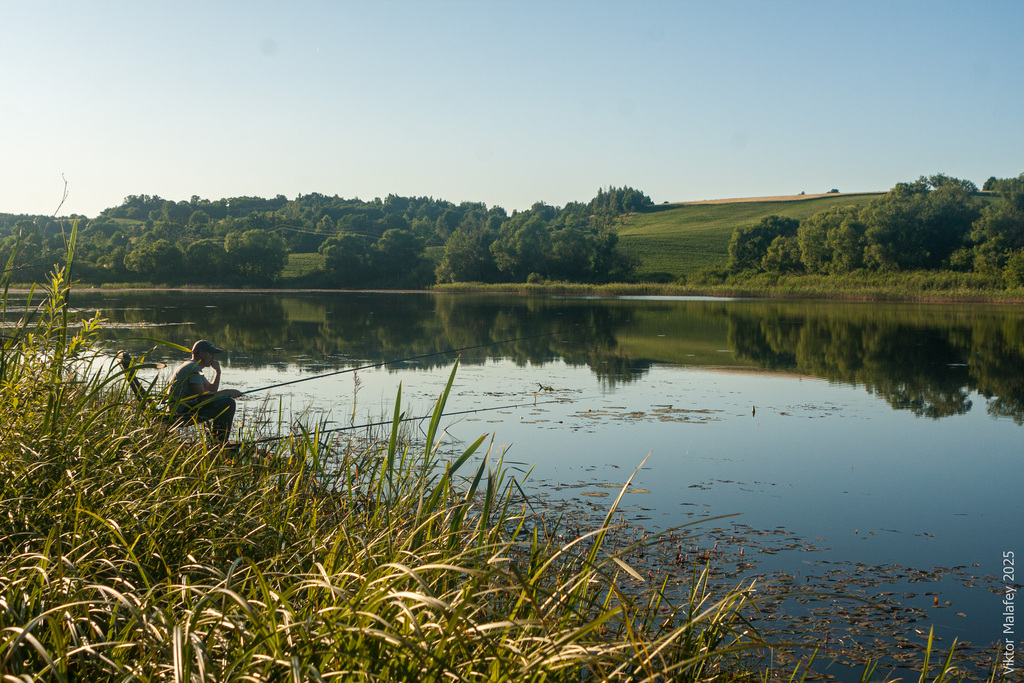 Цікаво, що в районі шостої години ранку на березі почали зʼявляться й інші рибалки, а так то ми були єдиними відвідувачама цього місця. І от один з таких, сів праворіч від нас на кладці. На наших очах він пару разів брався за підсаку й щось таки витягував. Пізніше Саша з ним розмовляв, то це було три карасів, які клювали щоразу на різні насадки: хробак, манка, перловка. Хлопчина це казав, що ще тиждень тому кльов був, а сьогодні якийсь геть поганий день.