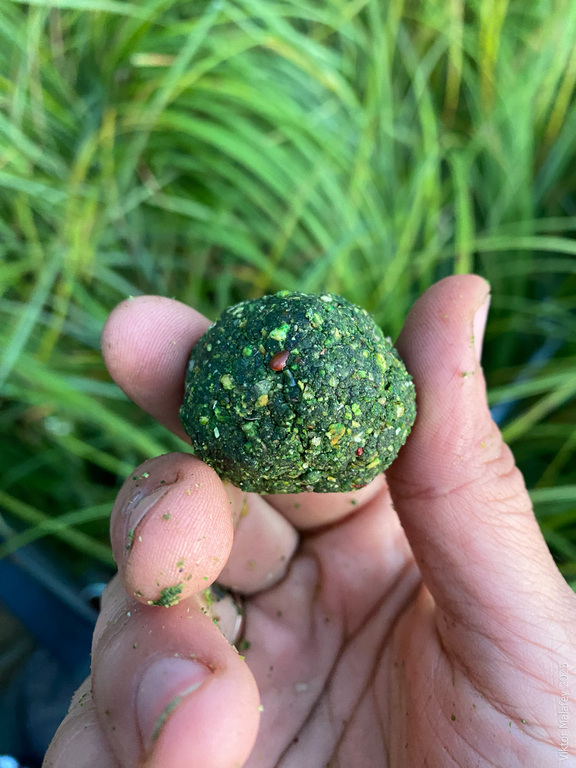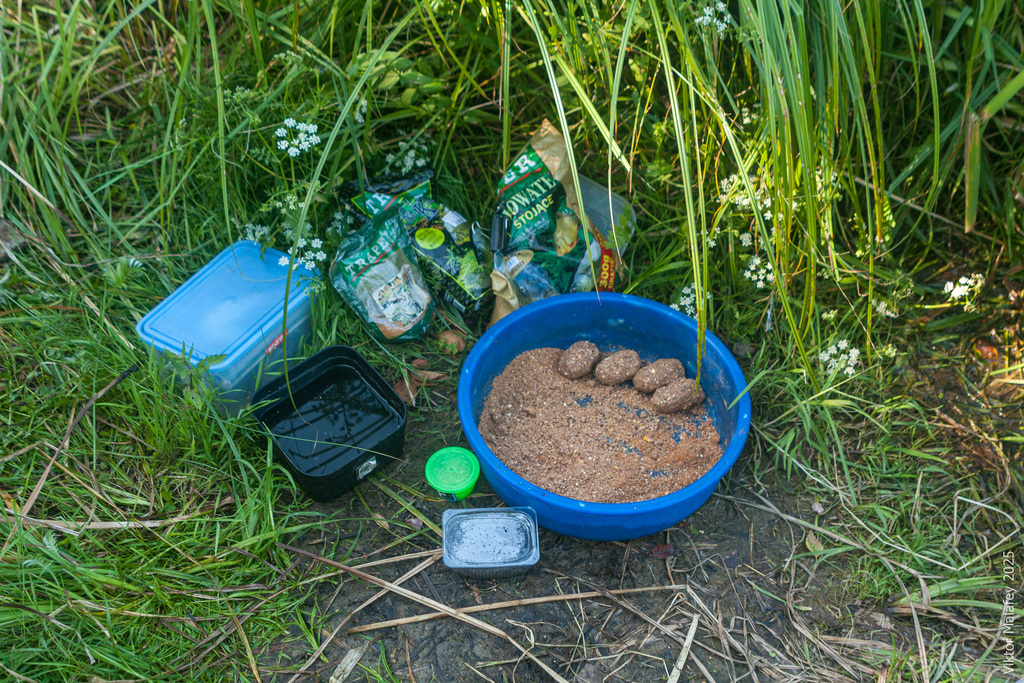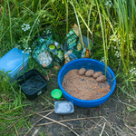 Ввечері ми добре загодували наші місця ловлі для поплавчанок. Моя одна точка ловлі відразу біля рдесту була закидана зеленою прикормкою Лин-Карась з запахом Марципану, трохи правіше від неї я накидав бази для стоячих водойм з додаванням атрактанту Карп-Лин-Карась. Хлопці ж використовували інтеркріль та флагман.