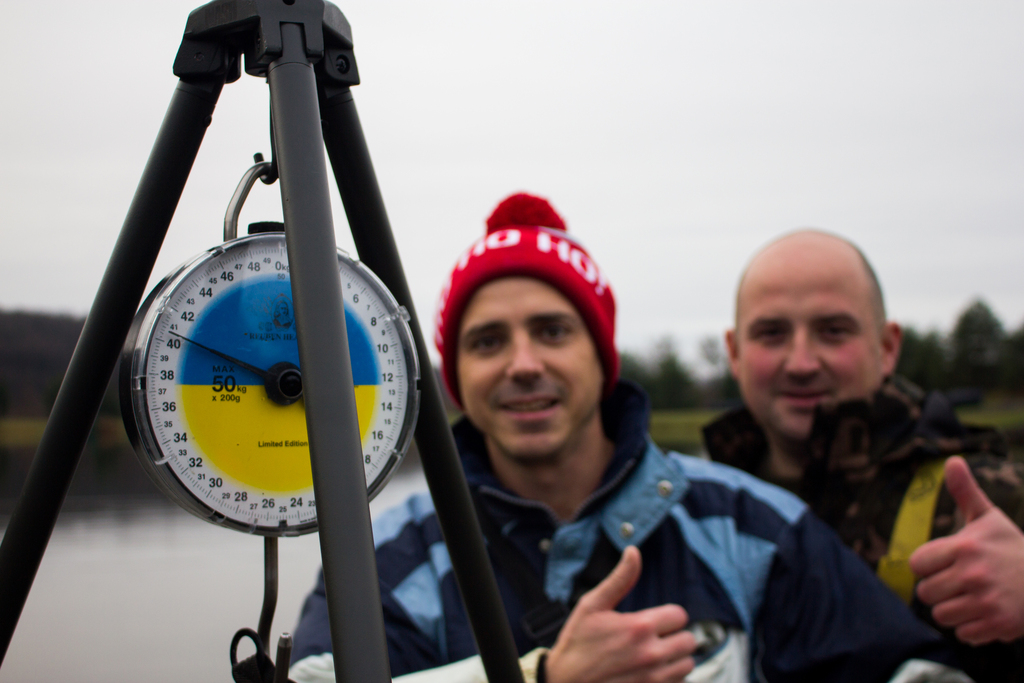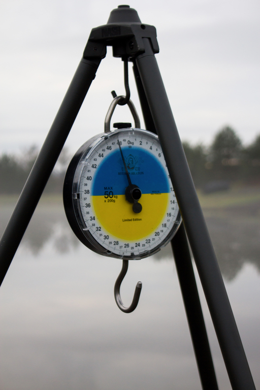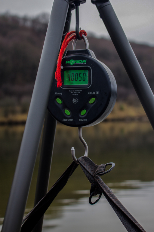 Далі акуратно ми повісили рибу спочатку на механічні ваги які були відтаровані на око, а далі вже для хірургічної точності та фіксації для себе та коропової спільноти точної ваги, ми зважили рибу на попередньо відтарованих вже електронних вагах, де вага показала – 40,050!!! Всі хто стояв поряд вибухнули від радості та ейфорії від побаченого наче «Новорічний Феєрверк».