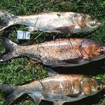 Основна ставка була на товстолоба і сома. Завезли технопланктон, годинка очікування і перший є - (6.200). Через деякий час під час розливу рибацьких напоїв ми помітили зникнення поплавка, що було далі ви зможете подивитись на відео...(7кг). З настанням темряви ми перейшли на ловлю сома і він нас не підвів. Кльов був як у чорних камней, правда розмір був неахті но зато було не сумно. До цього була інформація що люди ловили від 4 до 11кг сомів(на рака і великого живця). Просидівши до ранку крупняк ми так і не побачили - максимальний був десь на 1кг. В 9:00 клюнув ще один товстолов 5,400. Це була останя риба на цій рибалці. Рибалка сподобалась, природка бомбей, сало-водка-майонез....