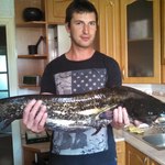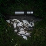 В перший фактичний день відпустки 6 серпня зібрав свої лахи і відправився на Горинь... Рівень води катастрофічно падає за 2 тижні ще 40 см. води зникло. Водичка трошки мутновата... Риболовля для юних орлів, бо клює вночи на все кожні 2-5 хв. За ніч я просто втомився махати вудкою... Упіймав більше 100 риб, переважна більшість, яких жорстоко втоплена) Клює густера "лаврушка", голавль до долоні, підлящики і інша дрібнота. Не дає підійти крупняку до наживки... Як я тільки не експериментував, ситуація не змінилась. Ніч була дуже темна, виходів риби на рідкість не було... Ставив на сома спіннінги. О першій годині на маленьку лягушку клюнув сомік 500 грам. Але лягушок більше не було. Сидів, тягав густеру, чекав нічний вихід ляща. Тут на берег випругнула жаба. Це був знак) Через 5 хв. вона була на гачку, а через 2 години сом 5,7 був на березі. В подсак із-за довжини не зайшов. Тому брав в воді голою рукою за нижню щелепу. На цьому пригоди не закінчилися.) Мав в запасі одного рака. Розрізав навпіл і закинув на ракову шейку. Сам пішов шукати жаб по камишам. Через 5 хв. здав на відмінно спринт на 50 метрів. Паравоз змотав 30-40 метрів лєски за хвилину і пішов під протилежний берег. На намагання затягнути фрікцион почала, тріщати вудка. Взагалі було відчуття, що в мене в руках не спіннінг, а івова лоза. Змотав він мені ще 10 м. лєски зайшов в плавун, дьорнув і розігнув крючок... Оскільки в тремтіли руки і самого почало підтрушувать. Витягнув фідер і на цьому рибаловлю закінчив в 4 години ранку. На рибалці був сам, тому сфотографувати було нікому, а "слєйфі" робити не вмію)))