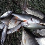 Доброго дня. Мізоч на зв'язку ... З 4:30 до 11:30 11 карасів 11 плотвічок і 2 окуня,все на опариша. Поплавок стояв мертво. Тільки біля одинадцятої почала клювати плотва. Карпа не ловив. Кум з вечора впіймав карпа за кілограм і амура 860гр. Та карасів пів відра... В ночі у всіх тишина...