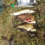 Приятелі були трохи далі від міста, то в них улов солідніше... Сиділи на глибині, водичка мутна... На росянку взяли 2 ляща: 1,3, 1,8 і щупаку, як бонус 1,6 кг. Це все на нитку 0,1 в якості поводка)))
