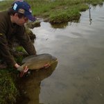 Далее пришел Миша, на пару минут опоздавший на паровоз. Мы как следует провели инструктаж и отправились на другой берег судить фидерные соревнования. В 7:40 Дима мне сообщил, что наша копилка пополнилась еще одним карпом весом в 6,83кг. Отсудив соревнования и вернувшись в лагерь, хорошо перекусили и заодно прикормили карпа. Изнеможённые соревнованиями улеглись спать. В 2:00 нас разбудил звук сигнализатора, это было опускание. Долго мы замешкались в палатке и карп, который шел в берег смог освободиться от крючка. Очередной паровоз не заставил себя долго ждать и в 4:00 мы уже взяли в подсак карпика весом 3,8кг. Далее был неслыханно наглый паровоз в 6:00 утра. Перепутав все удилища, всёже оказался в подсаке и карп 5,01. Распутывая удилища, Дима констатировал еще одного карпа на 2-м удилище. Оказывается, я спросонья не включил сигнализатор и дружок гулял с крючком во рту уже долго. Но тут неудача, сход под самым подсаком. По словам Димы, рыба была тяжелая, но увидеть ее нам так и не удалось. Далее я впал в спячку до 12:00. Проснувшись, увидел Юру Байду и Витю Жалнина. Так же в гости к нам зашел наш товарищ Виталий Ореховский. Не остались мы без внимания Сергея (Директорам нового рыболовного магазина «Рыбальська жилка»). Весь противоположный берег от нас был усеян рыболовами-карасятниками, а на нашем берегу наблюдался небывалый ажиотаж спиннингистов со Львова. Видели и Юру Хитрова и Влада Вильгуцкого. Знаем что отрыбачили и они на УРА.