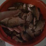 4) В мисці...таких як на долоні половина улову. Три екземпляри більших за цього. Була плотвичка більша ніж на долоню (клюнула на кукурузку).