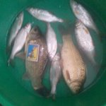 Перший закид поплавчанки і перше клювання принесло не велику плотву, приємно, але я цього року на поплавок ще не бачив красивих карасьових покльовок, тому чекаю його... Проходить пів часа клює тільки плотва, та що більша бере одразу і жадібно, та що менша просто збиває манку з гачка, клює вона відразу після закиду, 2-3 посмикування, і гадаєш чи є щось на крючку...приблизно так до 8 годин...потім один із поплавків помаленьку починає притоплювати і вести в бік, підсічка і є)) є щось приємне на тому кінці вудилища, риба стомлюється та потихеньку йде до берега, хороший карась, радості моїй не має меж, спочатку думав що щось дуже велике))) за зиму зовсім відвик, ну нічого...перекидаю вудочки і знову клює плотва, та обїдає манку. Потім уже до обіду ще один карась-красень і знову нервові посмикування без логічного завершення) вирішую залізти в воду та зайти за корчі там є добре місце, бачу в корчах якийсь пінопласт, то був екран, який був благополучно мною знешкоджений. Більше клювань хорошої риби я не бачив.