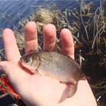 Це означало, що карась повинен кльювати, тим більше що на активність останнього вказували круги на воді. Пізніше, коли сонце почало добряче пригрівати, чималі стаї різних за величиною карасів, вигрівали свої боки на сонці. Через хвилин десять, після початку лову, був впійманий перший невеликий карасик (на мотиля).