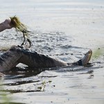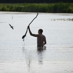чера(04.06) опять поехали туда же. Пока ездил собирал остальных по городу - прошел дождь. Ну не беда, синоптики ошибаться не могут и если сказали что будет солнце, значит так и будет. Зная что все равно клев начинается только с обеда, к 9 утра были там. Светило солнце, на небе тучи. Посреди воды увидали две палки... сеть, не иначе! Надо убрать это безобразие, ну и заодно можно будет почистить место где ловить. Но как только влезли поняли - не все так просто. Глубина сантиметров 70-метр...из нее половина - ил