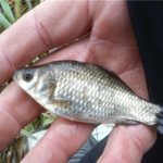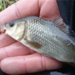 Немного половил на нашей речке , в 12.00 меня прогнал дождь . Настраивался подсечь карася - подсек и не только его . На корм встал " карп " и какая то " амазонская " тварь , иногда подлавливал плотву или карасика .