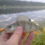 На водоймі ще були присутні рибалки, але я не бачив чи зловив хтось із них щось солідніше. Крім карасів, один із моїх колег впіймав два невеличких линочки. Вечір я присвятив поплавку, а вранці трохи покидав спінінгом, так як на хробака впіймав одного окунця. В результаті на «вертушку» і на «міджика» зловив декілька окунів. О 9-й ранку почали збиратися додому.