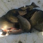 . Було двоє рибалок, які ловили донними снастями. Один нещодавно приїхав, він був без улову. Інший, не зважаючи на мороз, рибалив вночі і вже збирався додому (приблизно 10,30 ранку). Його улов на фото. За його словами найкраще клював карась у період з 23.00 до 1,00 ночі. Приманка - хробак, манка. Як тут не згадати крилату фразу "рыба есть - ловить надо уметь".