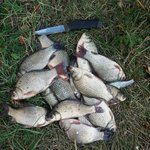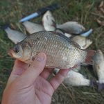Вітер трохи стих, і я побачив що в закормлених місцях на поверхню води піднімаються бульбашки повітря, сигналізуючи, що "секретну" прикормку хтось їсть. Щоб довго не затягувати звіт скажу, що той, за ким я сюди приїхав - карась, почав прокльовувати. Проте клювання були дуже тендітні. Риба віддавала перевагу невеличким хробакам і дуже маленьким за своїм розмірами кулькам мастирки. Класичних карасиних клювань було дуже мало. В більшості випадків поплавець довго вовтузився на одному місці (ледь-ледь піднімався, притоплювався, трішки рухався в сторону). І здебільшого серед цього "кльову" я вибирав момент для підсічки. Заміна гачків на менші покращила результати і сходів, яких до цього було чотири, більше не траплялося. Карась прокльовував, і це не могло не радувати. Декілька екземплярів також впіймав на "секретну" наживку, яка використовувалась і для прикормки. О 18.00 риболовлю прийшлося закінчувати. В активі на той час було 16 карасів, так що риболовся більш ніж вдалась.