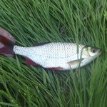 Фидеры молчали, поэтому достал 4м мах(китайболонь со спилеными кольцами) и решил брать количеством. Расчистил немного места от растительности, что б течение не слишком влияло на поплавок, и давай тягать на опарыша "шпроты"... Вода прозрачная настолько, что глубину видно как на ладони.В один из забросов килька как-то не решилась подойти к упавшей наживке... и в этот момент из растительности показалась спина побольше. Медленно подплыла, на секунду посмотрела и взяла наживку. Поплавок не шелохнулся, но так как наживки уже не было видно, а рыба начала немного смещаться - подсечка.