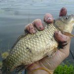 Впіймали кілька непоганих плоток, одну краснопірка, і у товариша хороший карась. Зважили --330 грам
