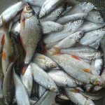 П.С. зловлена на попередній рибалці рибинка (така була одна)...каюсь...але може бути й карпиком....коли зловив - непридивлявся, і був впевнений що то карась, а вдома розгледів невеличкі вусики......досі я таких маленьких карпиків небачив і неловив